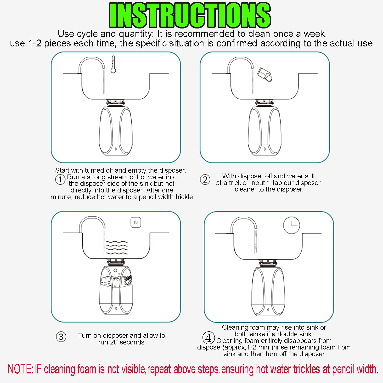 【DEEP CLEANING】Unique foaming and active oxygen reaction, fully contact the inside of garbage disposal, dissolve dirt, and achieve deep cleaning effect